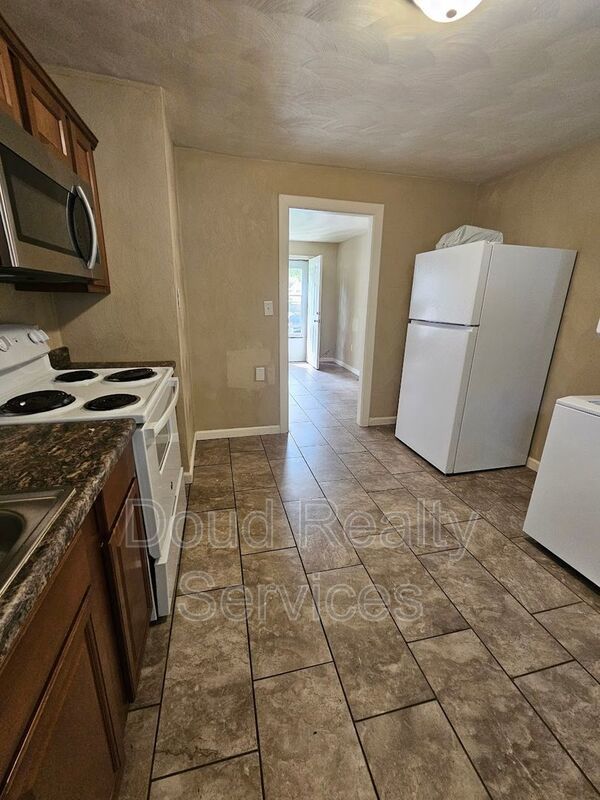 This beautifully updated home offers a cozy and comfortable living space. Featuring tile flooring throughout, the property includes modern conveniences such as a washer and dryer, a microwave hood, nice newer cabinets, and updated appliances. Enjoy year-round comfort with central heating and air conditioning. Step outside to relax on the back porch, perfect for unwinding after a long day. The spacious backyard offers plenty of room for outdoor activities. This home is a must-see!